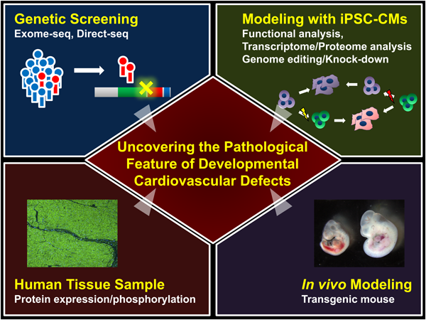 The combination of multifaceted assessment including genetic screening, in vitro modeling with induced pluripotent stem cell-derived cardiomyocytes (iPSC-CMs), in vivo modeling with transgenic mouse and observation with human heart tissue sample will provide us the solid evidence for the determination of the pathological feature of developmental cardiovascular defects.
