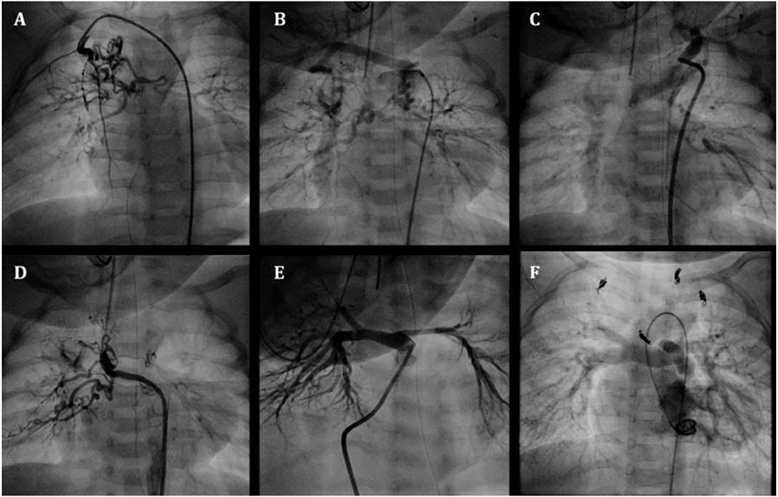 It did not matter whether dual supply was sufficient or not in these two cases, because there were obviously strong connections between the native PA and the MAPCAs identified by angiography. By contrast, we occasionally perform test occlusion of the MAPCAs if their connections seem to be insufficient. The qualitative and quantitative evaluation of sufficient dual supply is an unresolved issue that needs to be clarified in the future.