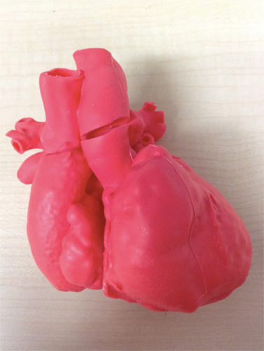 Commercially available 3D cardiac models of CHD (one for atrial septal defect [ASD], one for ventricular septal defect [VSD], and one for tetralogy of Fallot [TOF]) were used for this study. The model was made by the Cross Medical Corporation (Kyoto, Japan) based on CT images of children with ASD, VSD, and TOF. The CT images were further reconstructed into a 3D model by the CrossMedical Corporation. Then, a 3D cardiac model was created with soft urethane, using stereolithography and the vacuum casting technique. The cardiac phase of the 3D model was the end-diastolic phase.