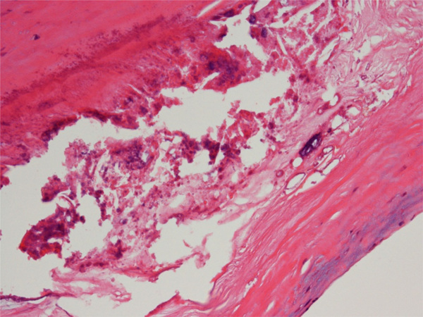 Few studies have examined the coronary arterial calcification (CAC) which develops after the acute phase of Kawasaki disease (KD) and narrows the coronary arterial lumen, increasing the risk of acute coronary syndrome.1) Pathological examination of KD-induced coronary arterial lesions thus far has been limited to autopsy cases, and no studies have reported on the composition analysis of CAC.