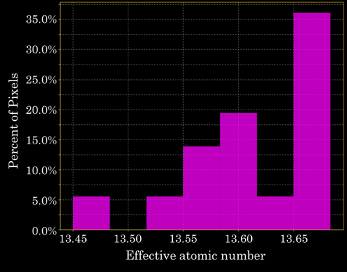 We can use various methods to analyze compositions of materials. Infrared absorption spectrometry is an analysis technique for analyzing compositions of materials such as urinary stones using infrared radiation.2) When infrared radiation is applied to materials, it is reflected or is transmitted. Measuring quantities of these infrared radiation allows us to conduct the compositions of materials, because quantities of reflected/transmitted infrared radiation are specific to each chemical structure of materials. Dual-energy CT is an imaging device which uses two different energy level X-rays to evaluate the grafts. This type of CT allows us to obtain the effective atomic numbers (EANs) of materials, which are particular atomic numbers calculated from the ratio of amplitude and frequency of X-rays penetrating materials. EANs allow us to obtain the compositions of materials.3)