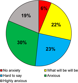 | 1. Highly anxious 2. Anxious 3. Hard to say 4. No anxiety 5. What will be will be |