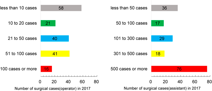 Conclusion: It is thus necessary to create a training environment where the number of surgical cases, difficulty, and other properties are programmed to improve the harsh working environment, and to establish an ‘all-Japan training system’ for the next generation.
