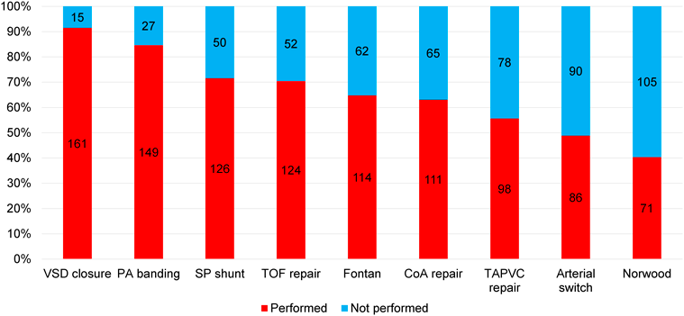 | VSD closure Performed, Not performed PA banding Performed, Not performed |