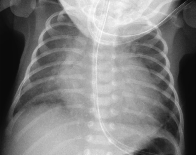 Anomalous origin of a unilateral pulmonary artery from the ascending aorta (AAo) is a rare congenital malformation, which is characterized by the right or the left pulmonary artery originating from the AAo with separate semilunar valves. The contralateral pulmonary artery is normally connected to the pulmonary trunk (PT) arising from the right ventricle. It accounts for 0.1% of all congenital heart diseases.1) The anomalous pulmonary artery is more frequently on the right than left.1, 2) The anomalous pulmonary artery does not usually have a direct connection to the PT. Only three cases have been reported with continuity between the anomalous right pulmonary artery (RPA) and the PT.3–5) Their morphological diagnosis is still controversial, whether anomalous origin of the RPA from the AAo (AORPA) or aorto-pulmonary window (APW).6) We herein report a premature baby with AORPA or APW whose RPA communicating with the PT via a small lumen.