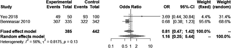 Two reports1, 4) were evaluated to determine whether the detection rate of structural abnormalities is higher using 3D/4D images. TUI was the method to express 3D/4D images in either of these studies. Heterogeneity was insignificant, but the overall evidence was described as random effects. The CI of the OR expanded over 1.0. It cannot be concluded that 3D/4D images are more capable of depicting intracardiac abnormal structures than the conventional images do (OR, 1.16; 95% CI, 0.26–5.44; p=0.85).